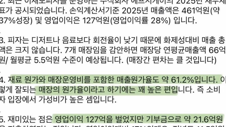 Okay, let’s get into the nitty-gritty because these numbers are actually insane. According to the viral post on TheQoo, Lee Jae-mo Pizza has a sales-to-cost ratio (COGS) of a whopping 61.2%. If you’re not a business major, let me break it down: that means for every 10,000 won you spend, over 6,000 won is going directly into the production. Most restaurants usually hover around 40-50% for their total COGS, with raw ingredients only making up about 25-35%. But at Lee Jae-mo? Pure ingredient costs are reportedly around 50%. 😱
