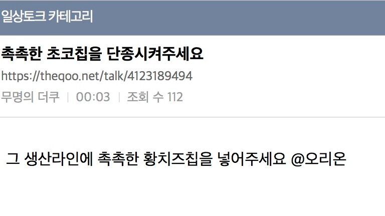 Okay, so I was doing my usual 3 AM TheQoo scroll—don’t judge me, we’ve all been there—and I stumbled upon a post that literally made my heart STOP for a second. The title was: ‘Please discontinue Chok-Chok-Han Chocolate Chip.’ I was like, NO WAY. Not today. Not in 2026. Not my favorite childhood snack! I was ready to throw hands, but then I clicked on it and realized it was a total bait-and-switch. The OP (original poster) was actually losing their mind over how GOOD they are. The post already has over 19,000 views and the comments are going absolutely WILD. It’s giving major reverse psychology energy and honestly? I’m here for the drama.