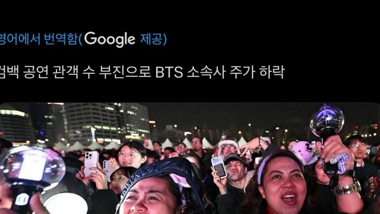 BBC의 기사 ‘BTS agency shares fall as comeback concert fails to draw expected crowds’는 철저히 자본 시장의 논리에 근거하고 있습니다. 이들이 비교 대상으로 삼은 것은 과거 BTS가 기록했던 전 세계 스타디움 투어의 합산 관객수나 온라인 스트리밍 동시 접속자 수입니다. 물리적 공간의 한계가 명확한 ‘광장 공연’의 특성을 무시하고, ‘BTS라면 수백만 명을 한 장소에 모았어야 한다’는 식의 무리한 프레임을 씌운 셈입니다.